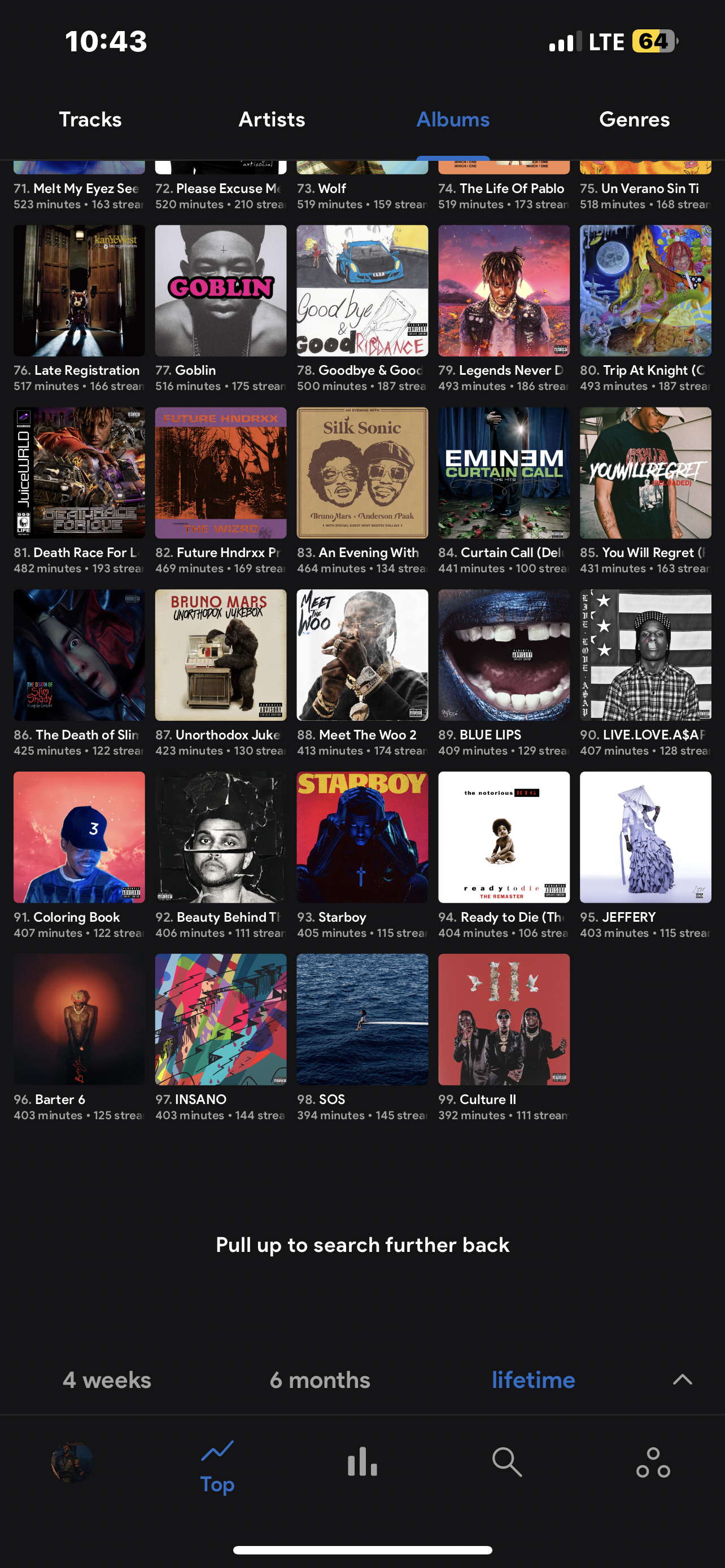 I was scrolling my stats and suddenly I can’t go any further down after the number 100 spot