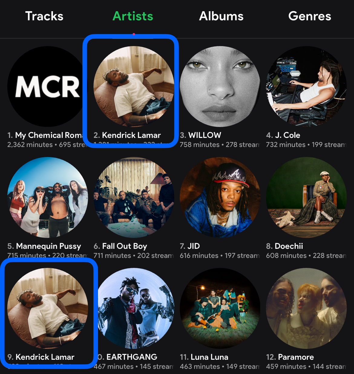 Hello! There are two separate artist profiles for Kendrick Lamar