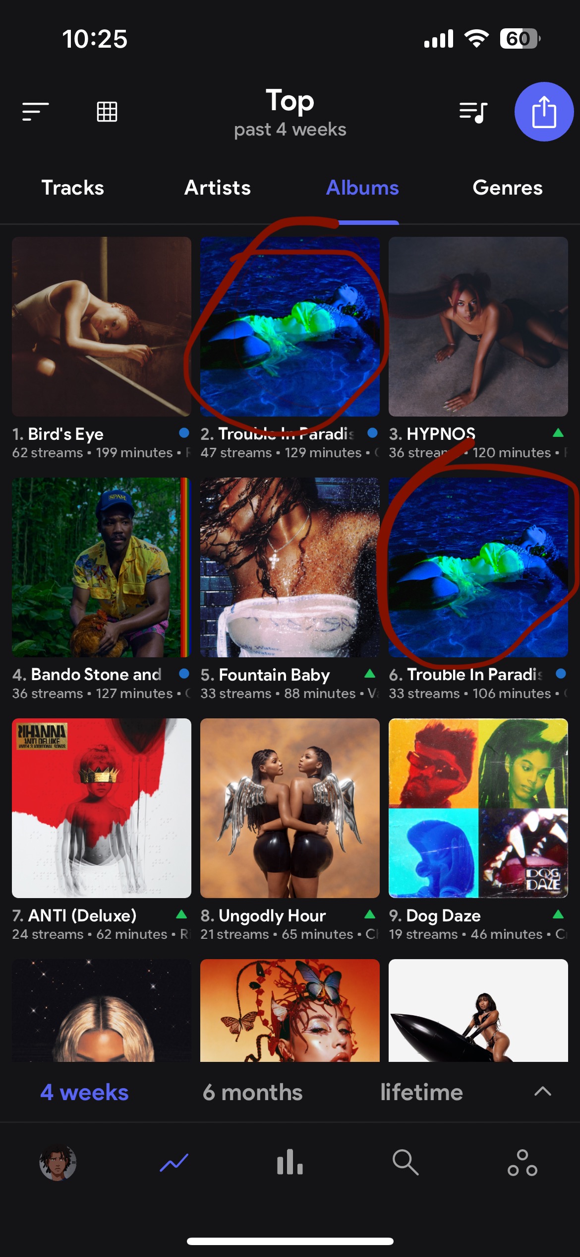 Hello! So I was looking through my albums and happened to notice one of them (trouble in paradise by Chloe) was repeated. I found this weird since it was a new album and doesn't have a deluxe.