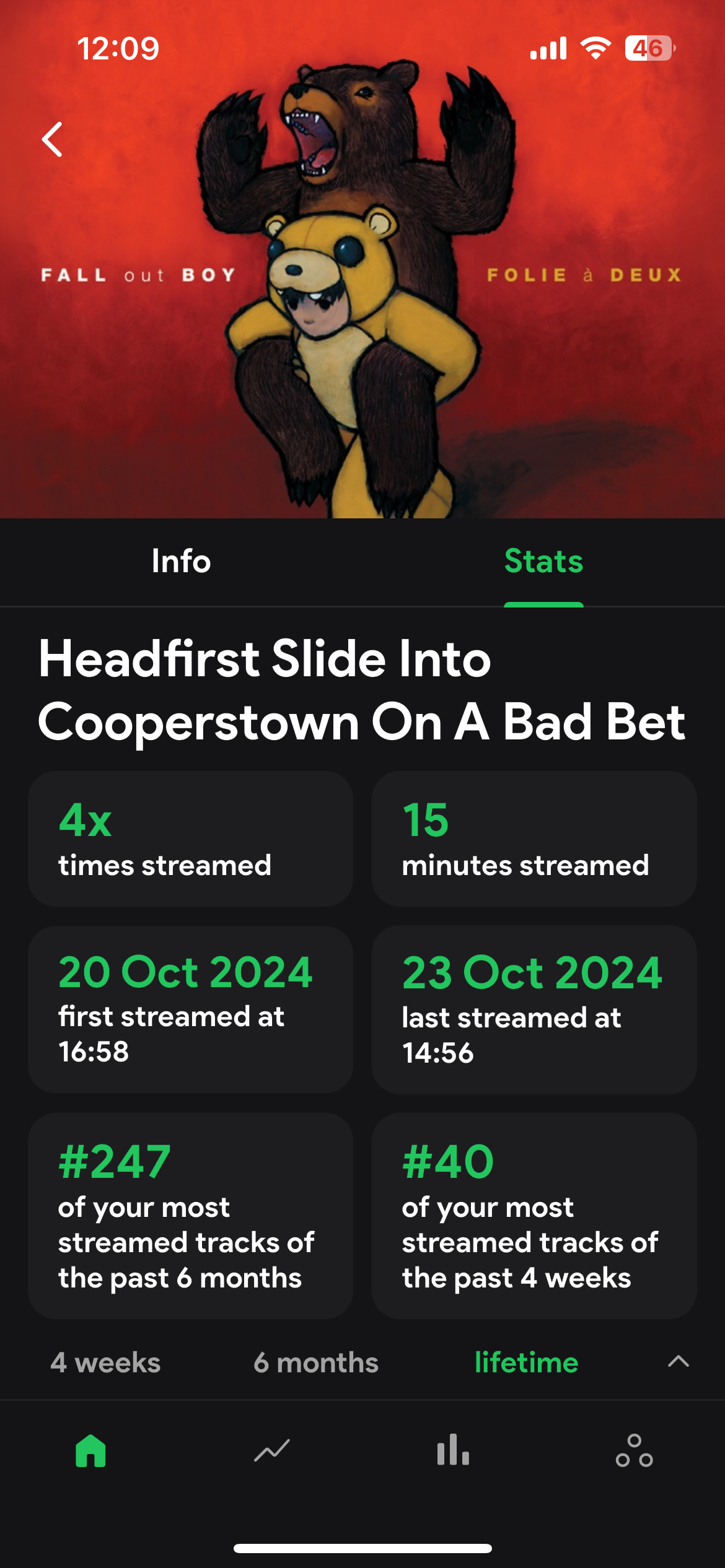 My streaming history for this entire album is missing a majority of my data. For example, this song was my top song of 2023 but according to this app I only started listening to it last month. The other tracks on this album also show only the past month or so of my streaming history, even though Iβve listened to this album much longer than that.