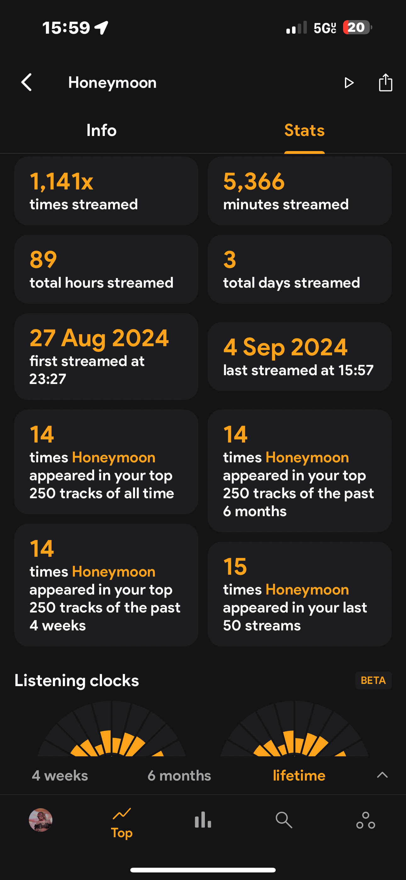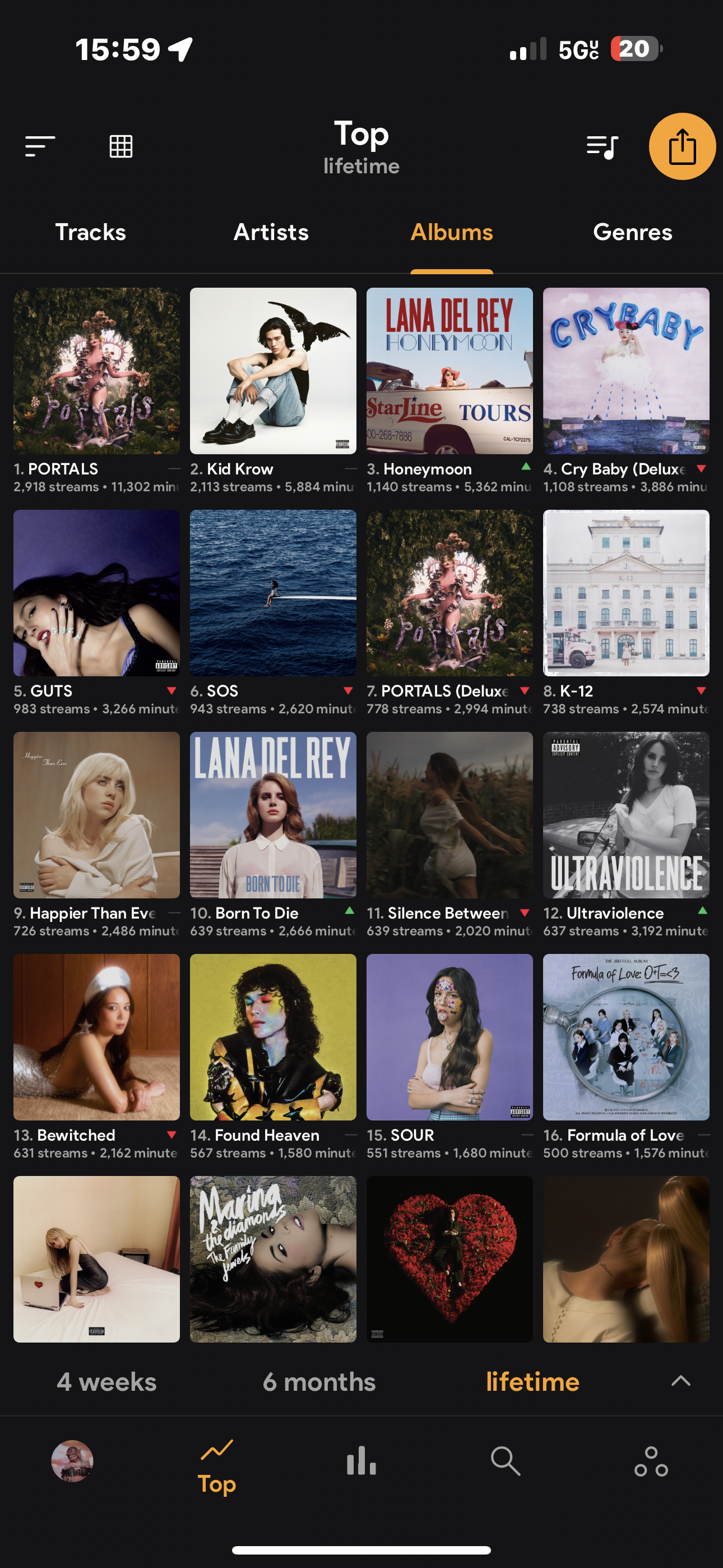 heyy so honeymoon by lana is now my third top album, i first listened to this album about a week ago and it already has 89 hours. i love the album but it has not been playing for the long. please is there a way to fix the already flawed results or at least prevent this in the future?