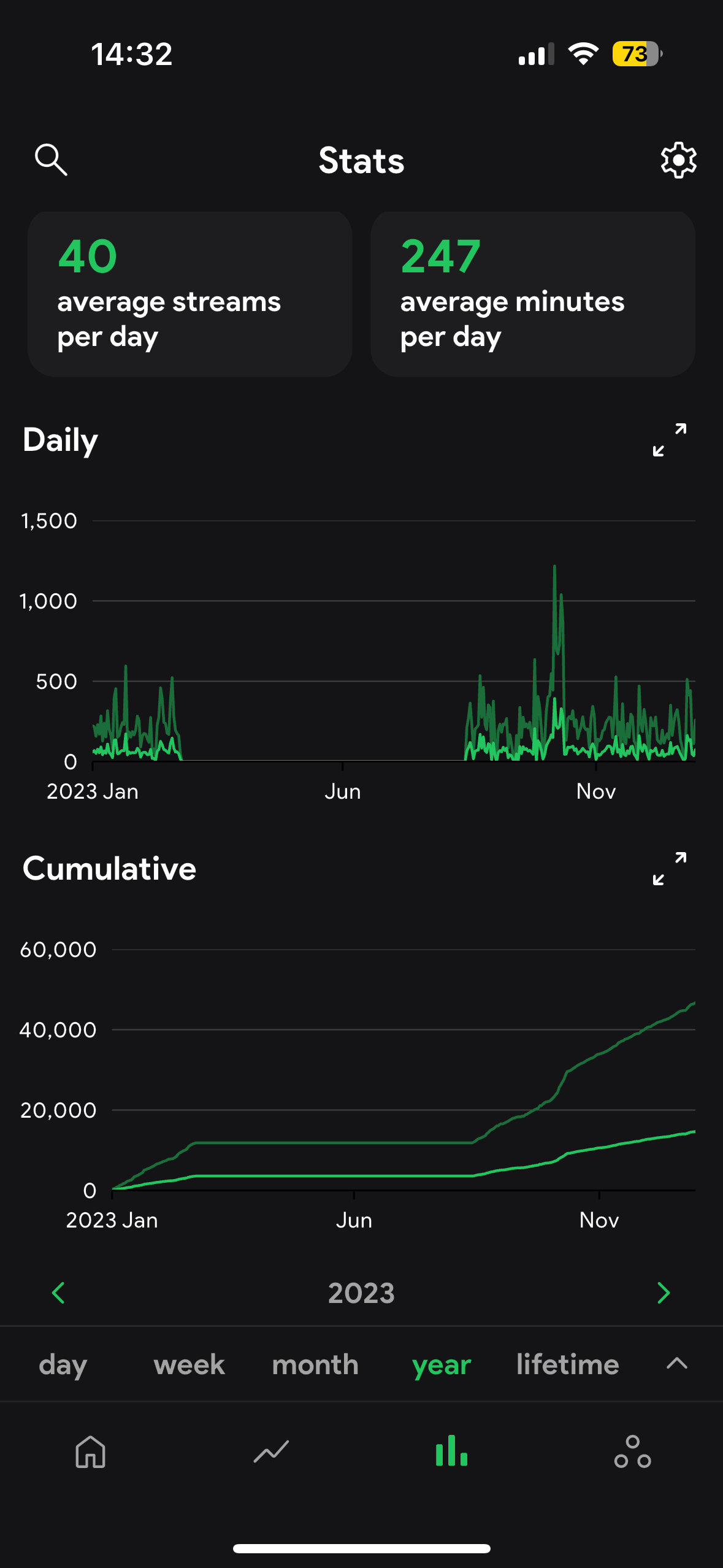 the yearly view shows i havent listened to any music in 2024 may-aug and in 2023 may-aug, which is impossible