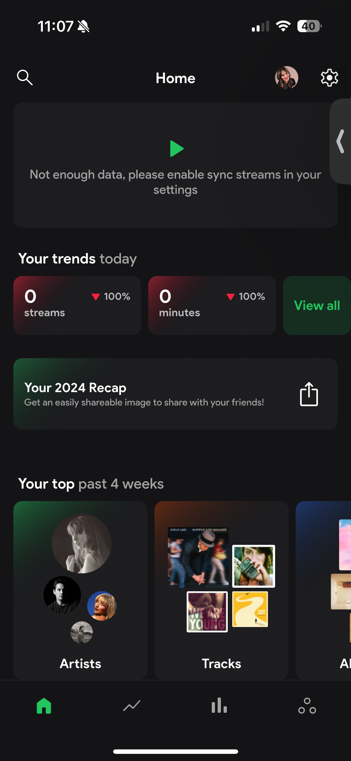 On my home screen, it always says “not enough data, please enable sync streams in your settings” however I've had my spotify sync streams enabled for months.