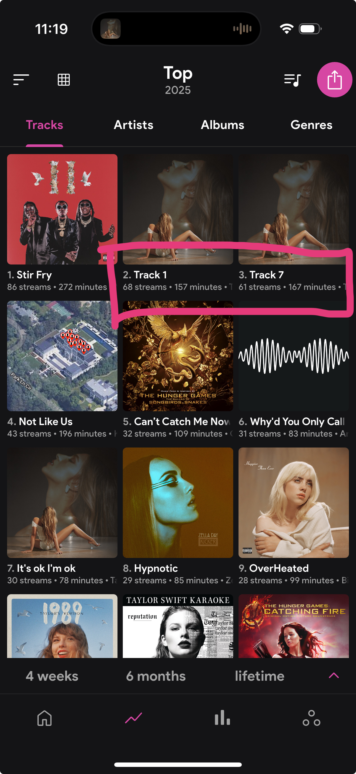 I boxed the problem, it appears to be from the same album, which is a newly album, which may be why the system is not updated, since the artist (tate mcrae) released another version of the album right after with a different track order