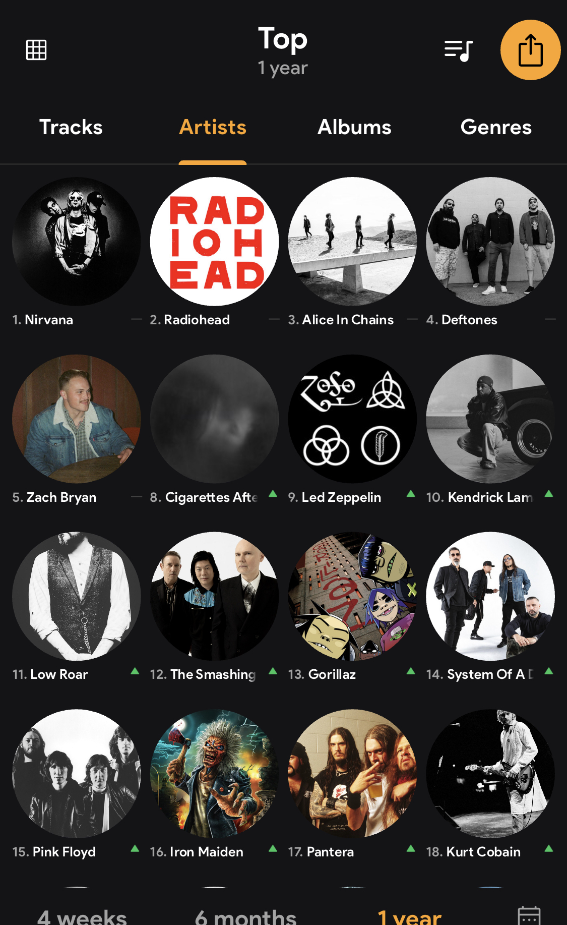I’m not great at explaining stuff but you can see what’s going on in the image. I forgot what order it happened in but I’ve been missing 7 for a few days and 6 today. I know that 6 should be Green Day but I have no clue about 7. I think 7 could be Cigarettes After Sex and it shows up as 8 and so on.