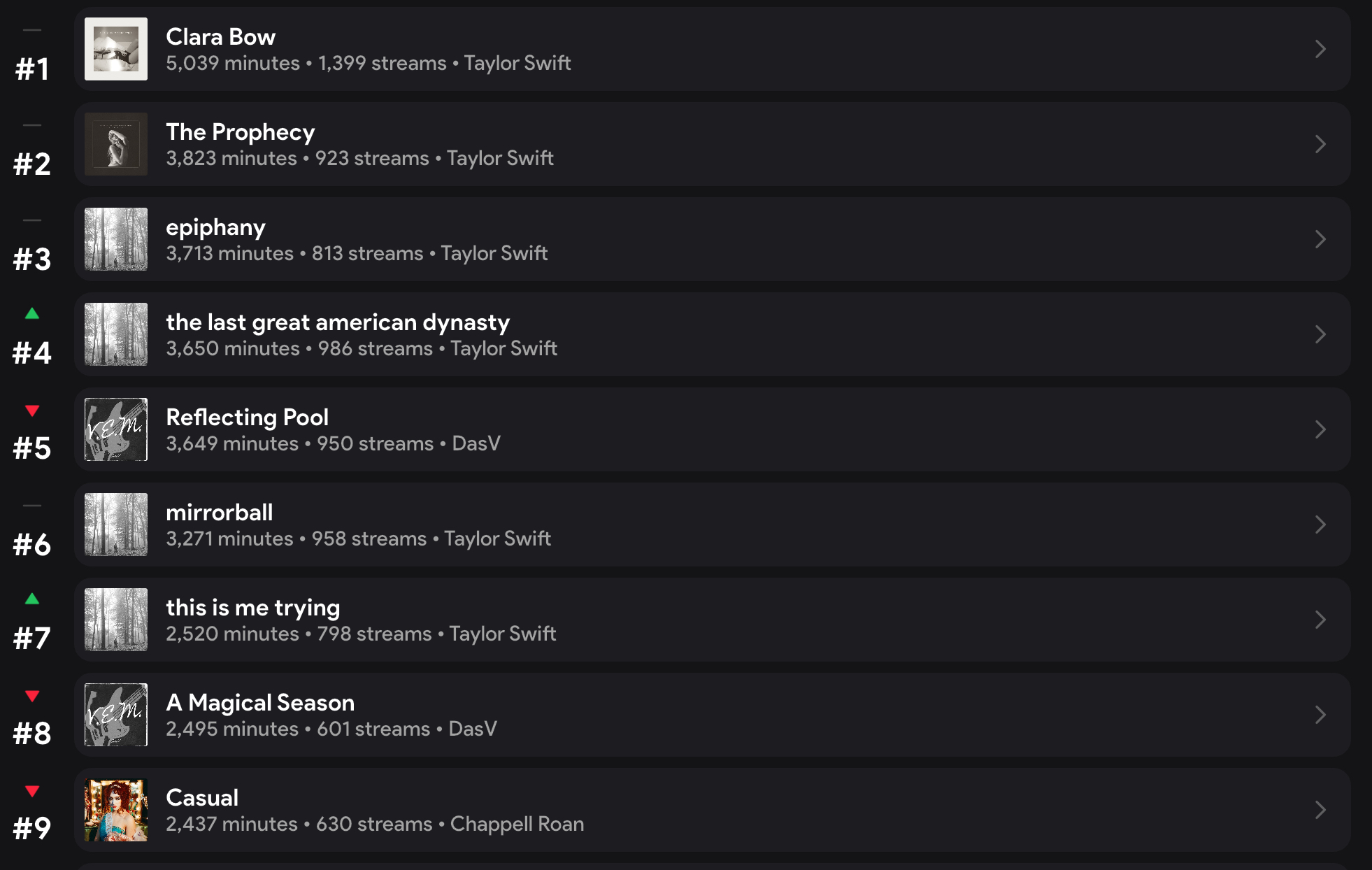 I have never heard of #5 and #8 in my entire life yet they are there? I guess instead there should be Taylor Swift songs from Folklore (Pretty sure) but they are here instead. Can someone fix this please