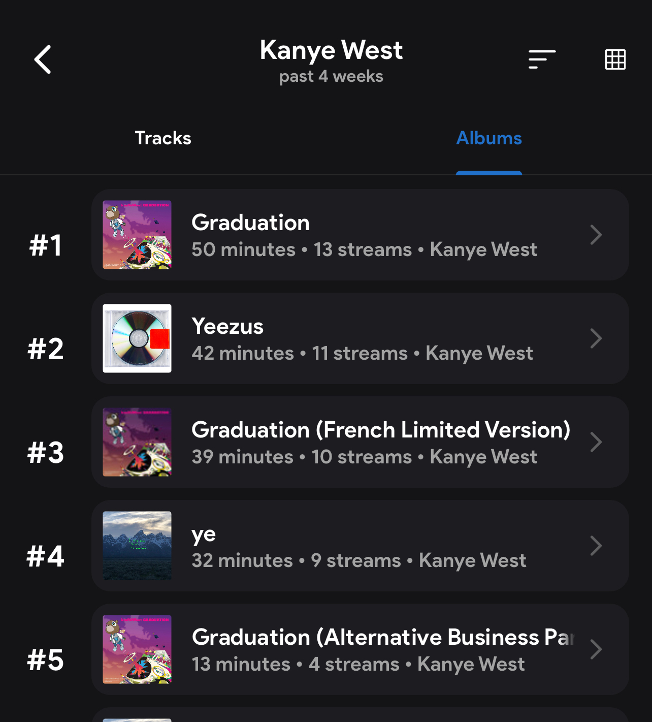 I was listening to some albums and noticed Graduation has these completely unrelated duplicate versions that I’m not even listening on, don’t know what causes a “French Limited Version” or “Alternative Business Partner” to appear but whatever