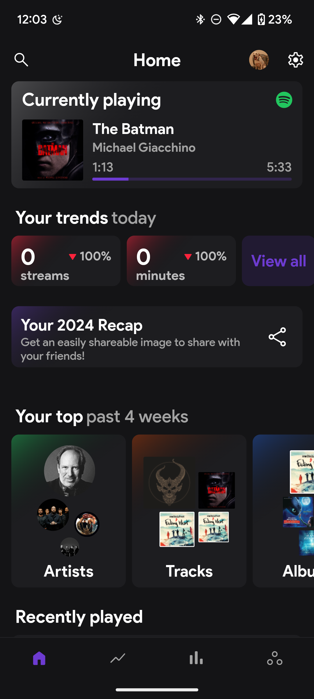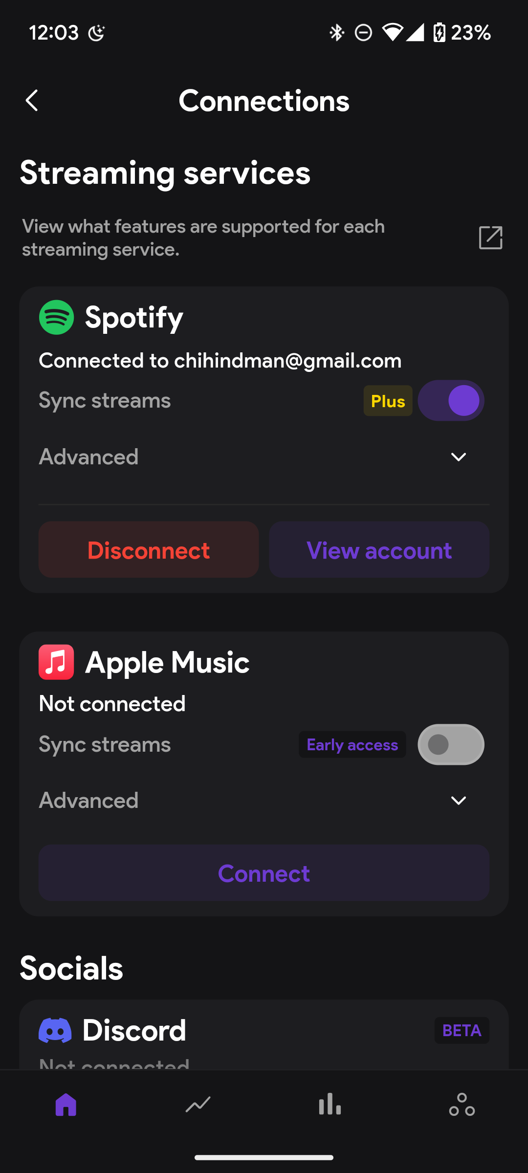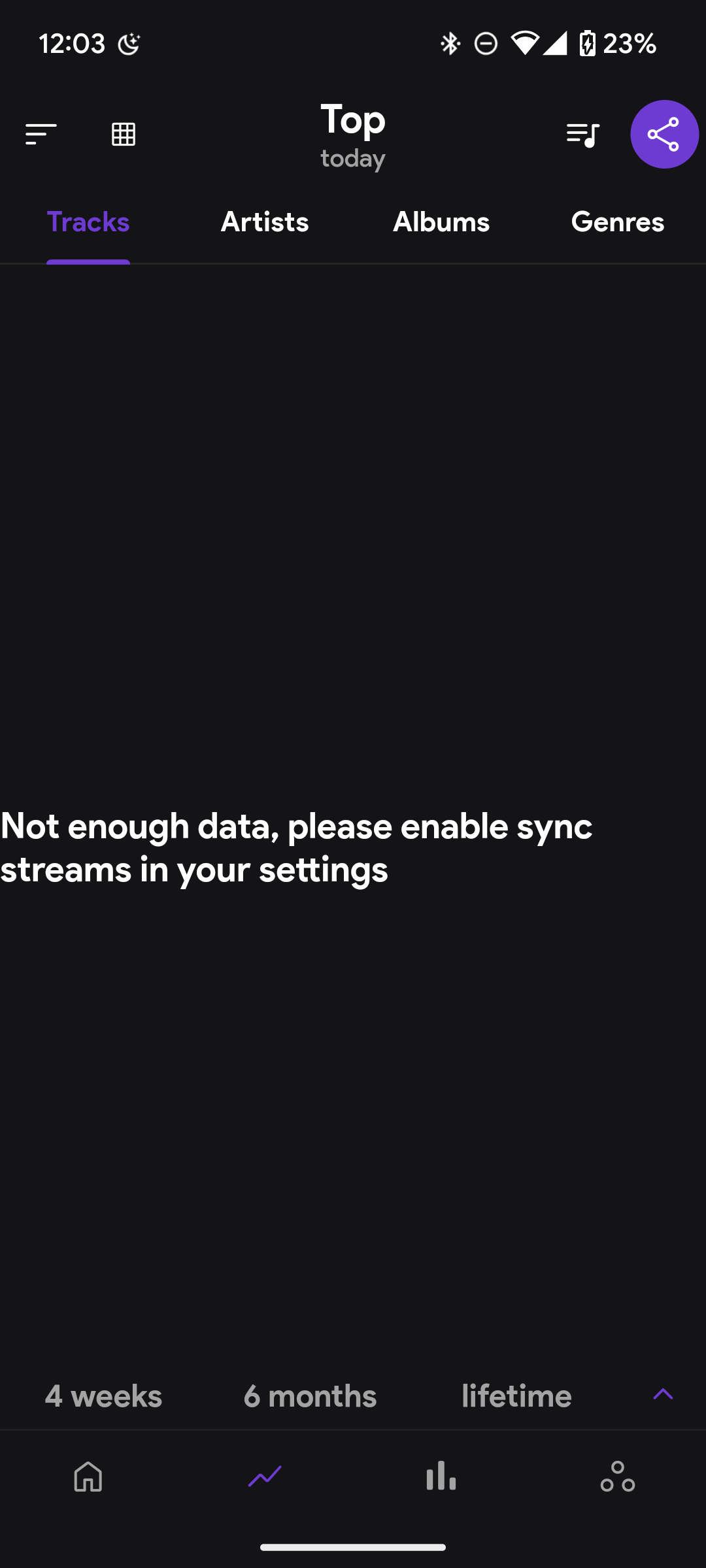 The app won't show how many streams I have or anything. It still has my streaming history, like usual. The sync streams is on.