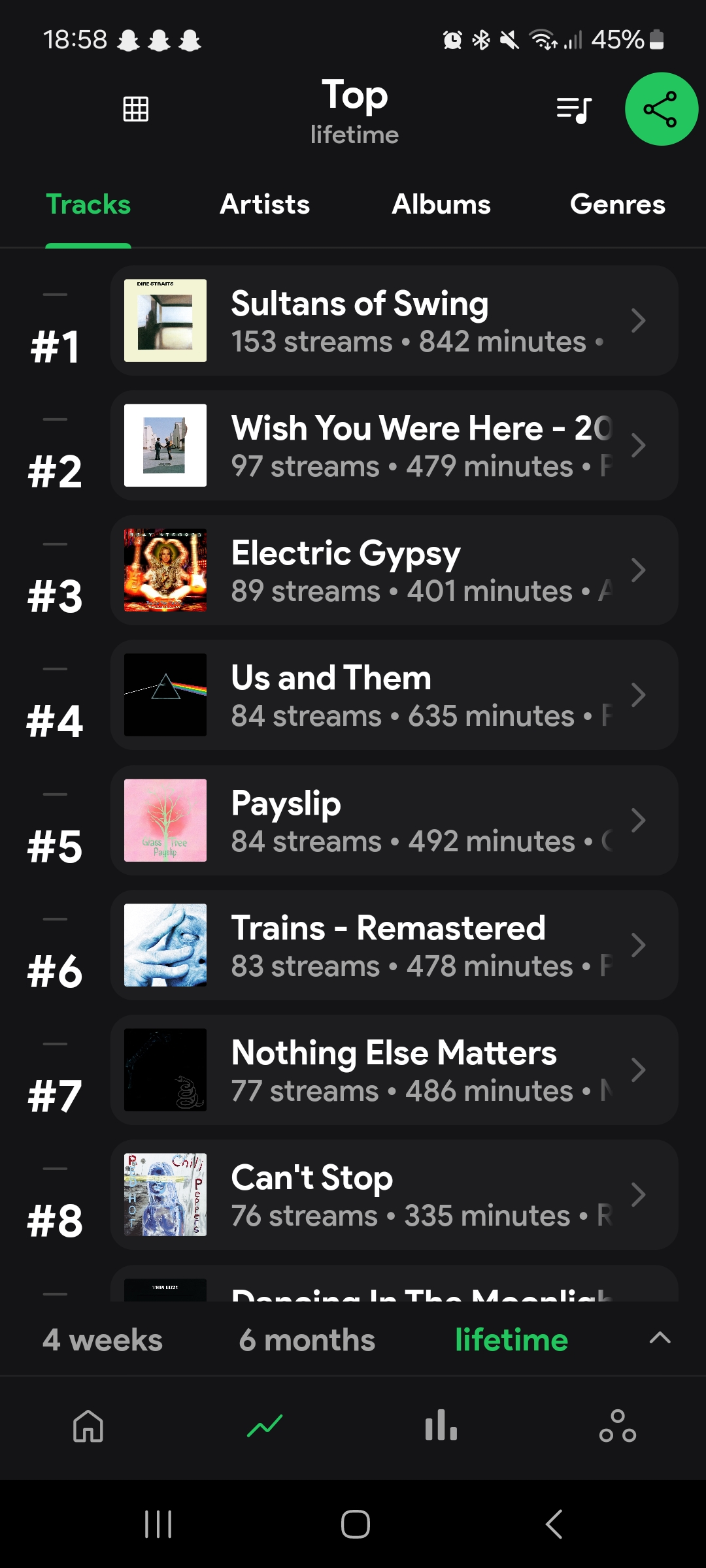 I somehow lost the ability to sort my top tracks and artists by the amount of time I've listened to them. I can only sort by number of streams. The button at the top left is completely missing.