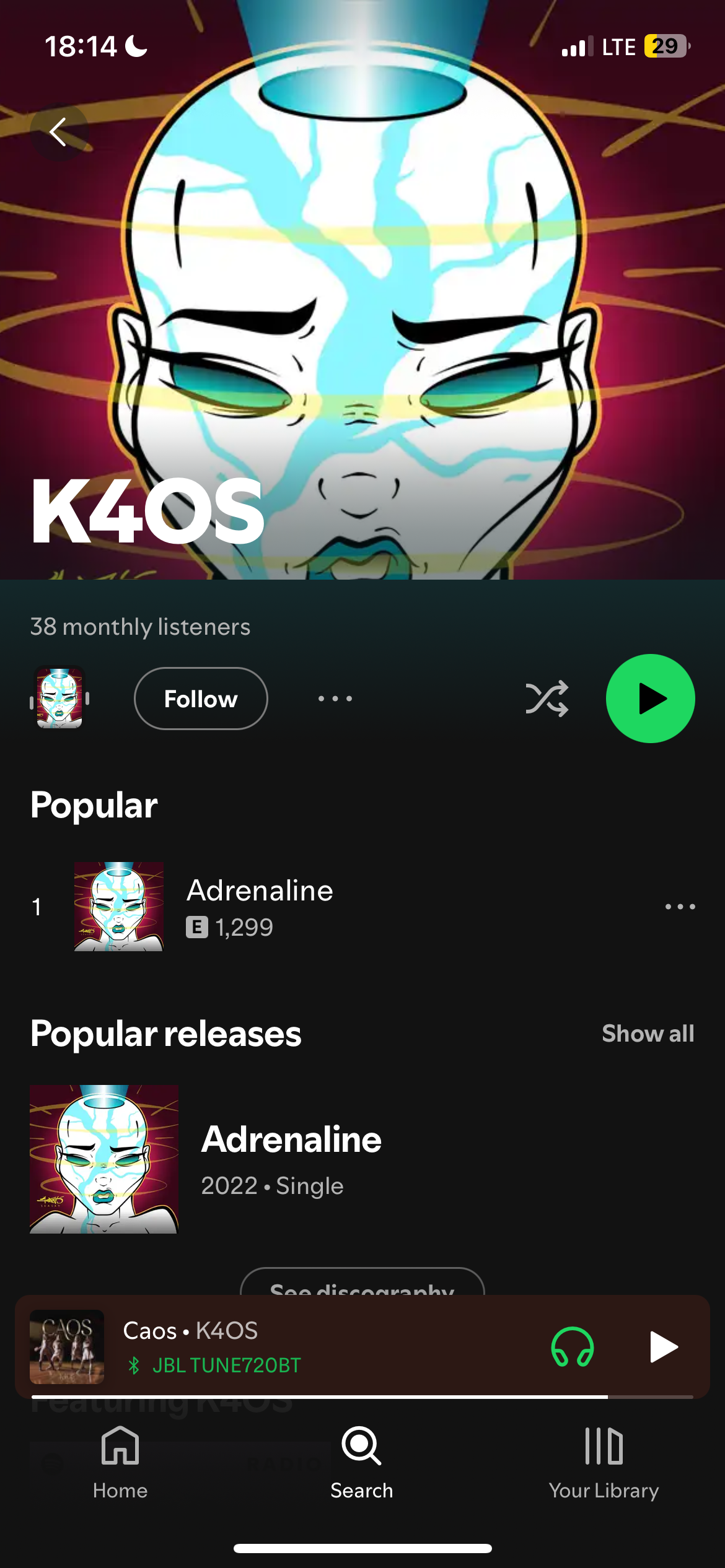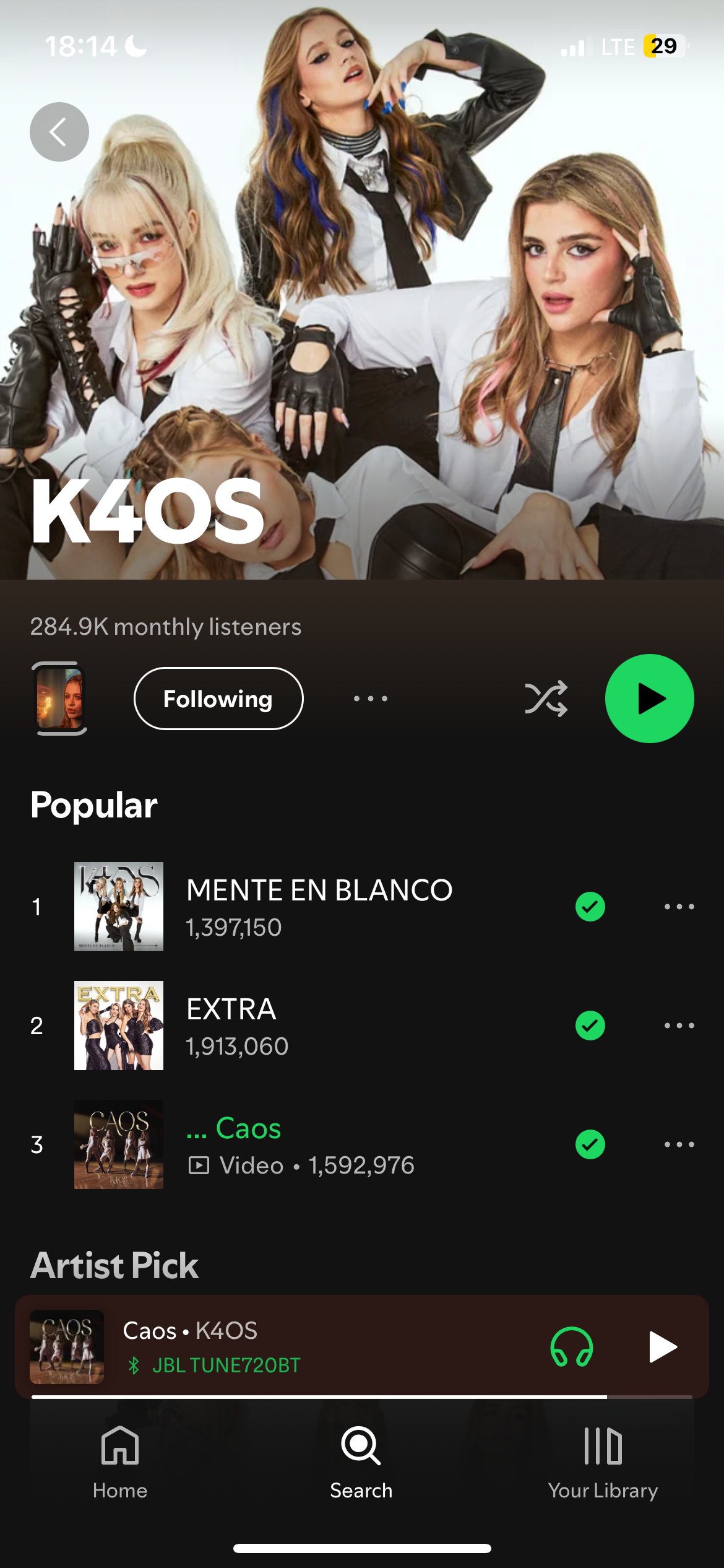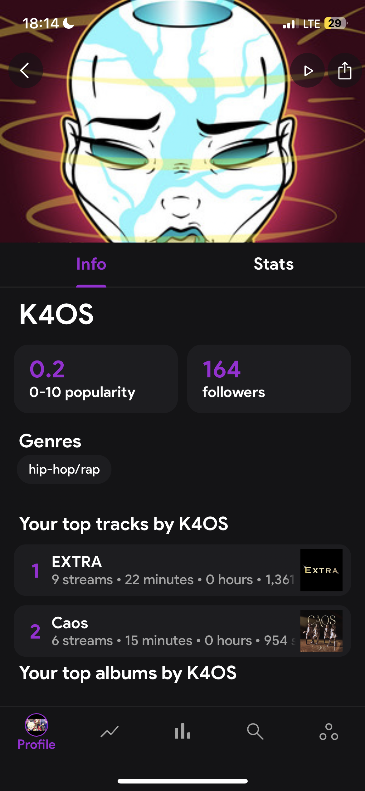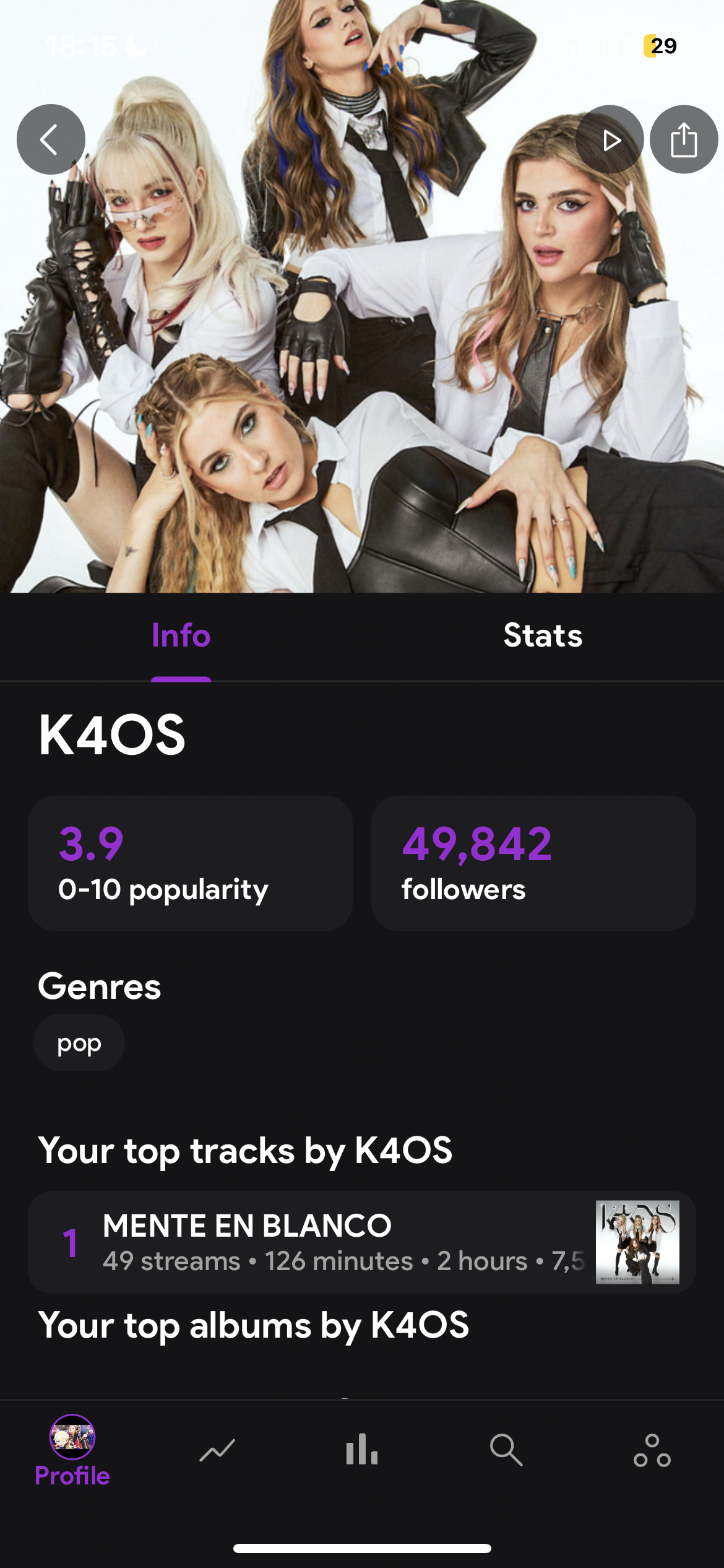 When I stream two tracks „Caos” and „EXTRA” from a girlgroup called K4OS in statistics they appear on a profile of another artist called K4OS