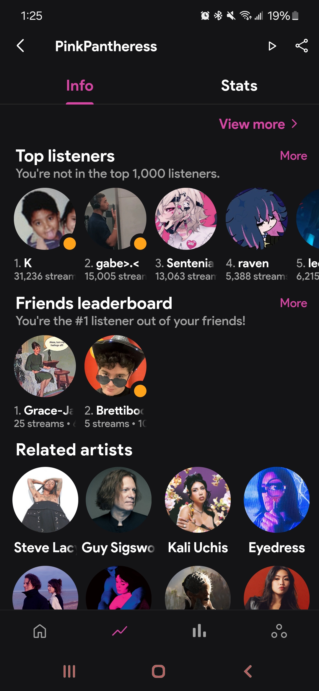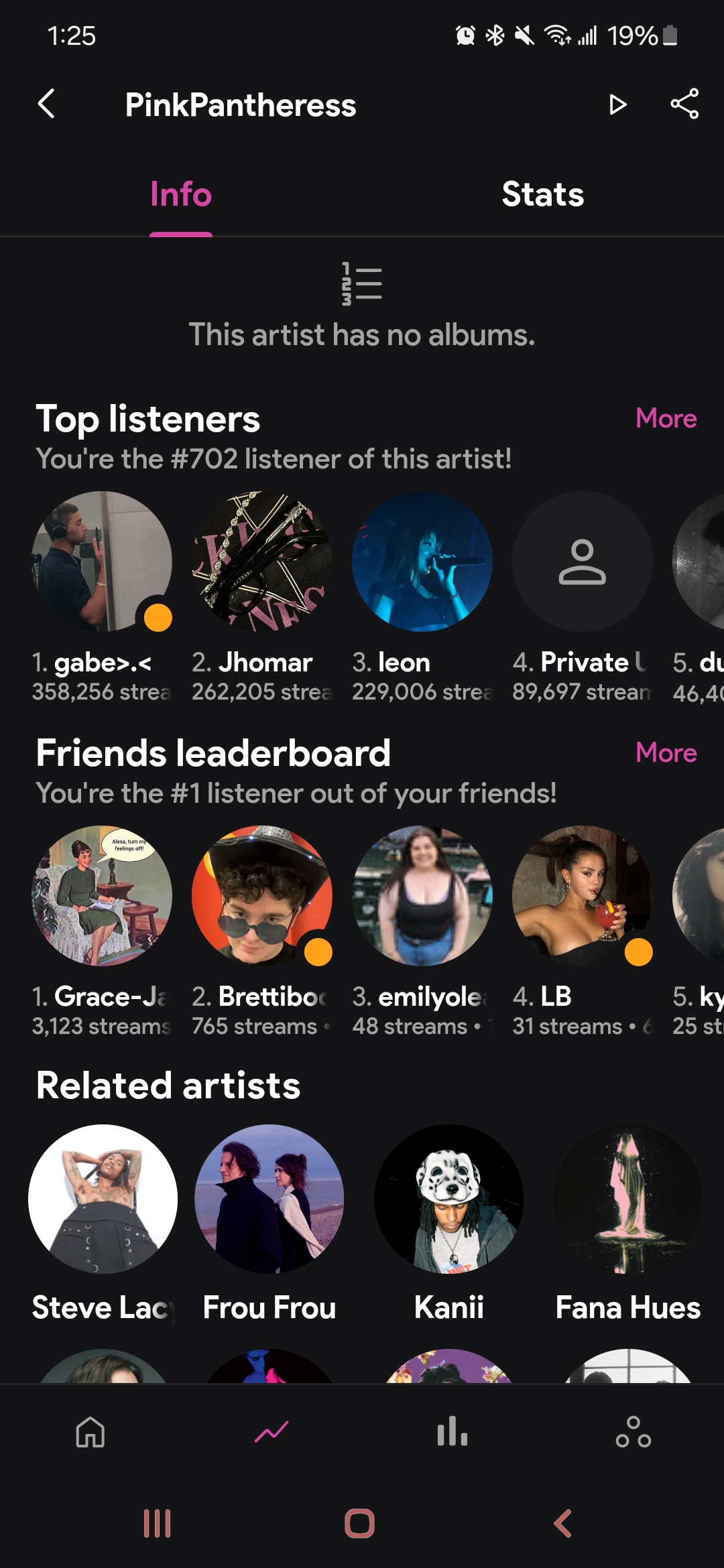 For the artist “PinkPantheress”, it's saying there is two different versions of her? Like, anytime I stream her music now, it says I've only been listening to her recently, but if I go check my streams for her a month ago, it says I've been streaming her music for over a year. I attached two images to show too, incase my explanation wasn't good.