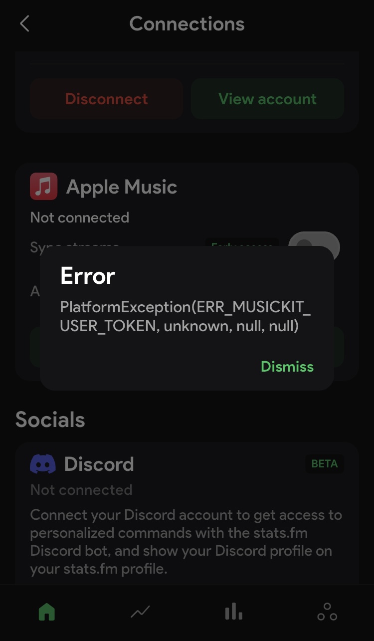 I am already logged in with Spotify and when trying to link Apple Music too it now shows an error and does not work. I had linked apple for a few weeks but it then seems to break and has not worked since