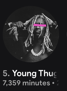 I was glad Young Thug’s icon went back to his icon on Spotify after it stayed in this god awful icon it had that had nothing to do with him and now it went right back into that exact icon after 2 days, I genuinely don’t get why it needed to be changed back to that garbage