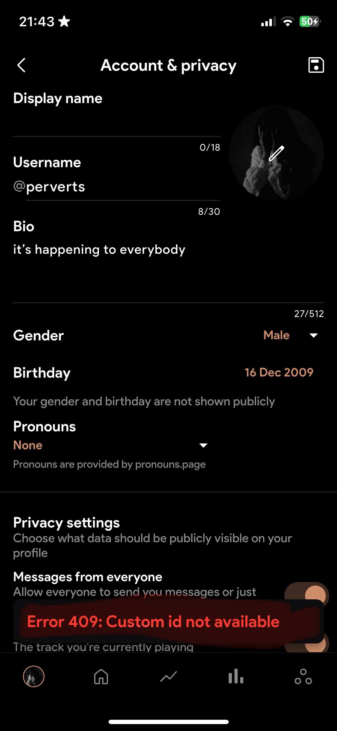 i typed in my username false and now i can’t change it, it says that when im trying to: