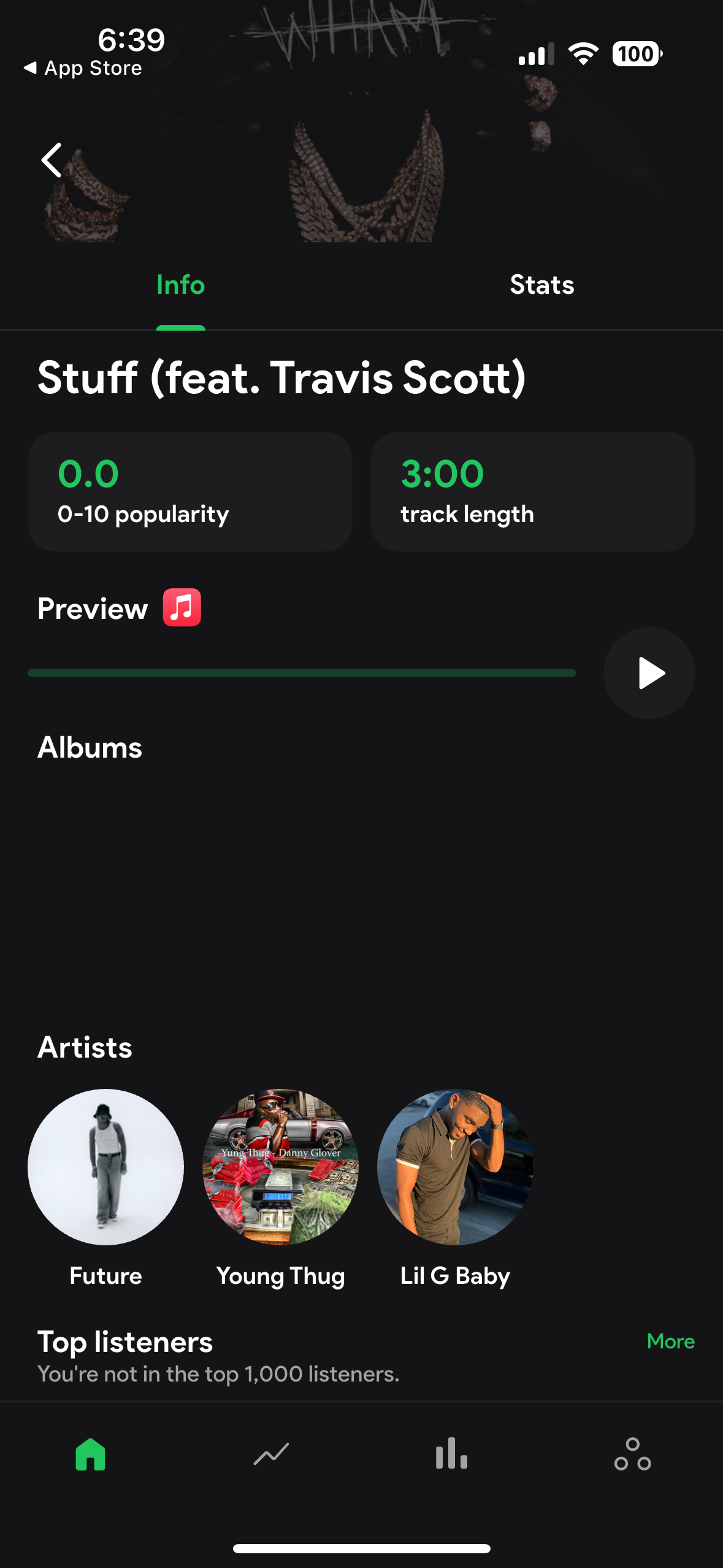 My top song of the year so far is “Stuff” by Lil Baby and Travis Scott. And I’ve been listening to Lil Baby’s new album on repeat. In other words, I know Lil Baby and Travis Scott should be my top artists right now. However, my top song doesn’t even have Lil Baby or Travis Scott credited as artists therefore they aren’t getting any stats from me listening to the song. It currently says the artists on the song are Future, Lil G Baby, and Young Thug. I don’t even know who Lil G Baby is, and I have barely listened to any Young thug or Future this year and because the song is bugged, it says they are all my top 3 artists. Plz look into this 🙏🙏🙏