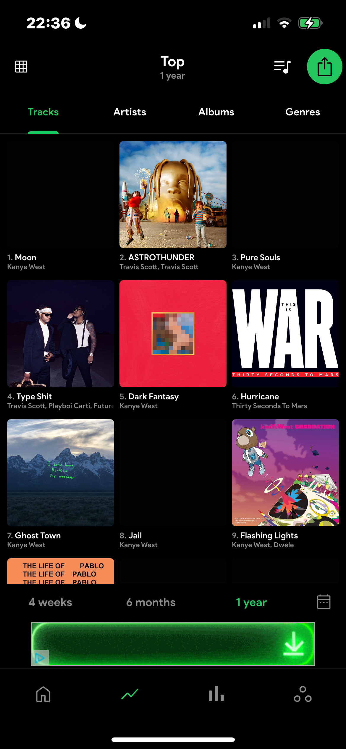 The song at number 6 is the wrong song it is meant to be Hurricane by Kanye West on the Donda Deluxe album.